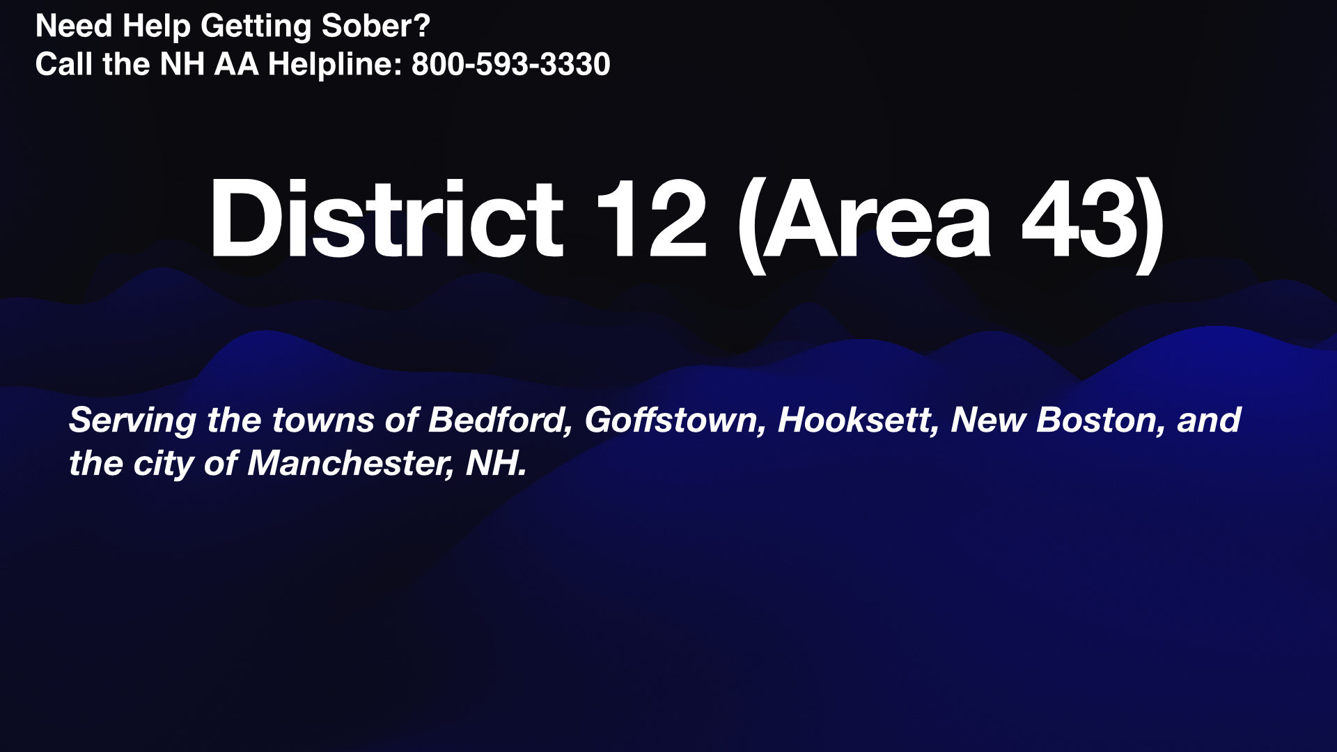The General Service Assembly of Alcoholics Anonymous (District 12) is the guardian of local services and of the Twelve Steps, Twelve Traditions and Twelve Concepts of Alcoholics Anonymous. The District shall be a service body only, never a government for Alcoholics Anonymous.